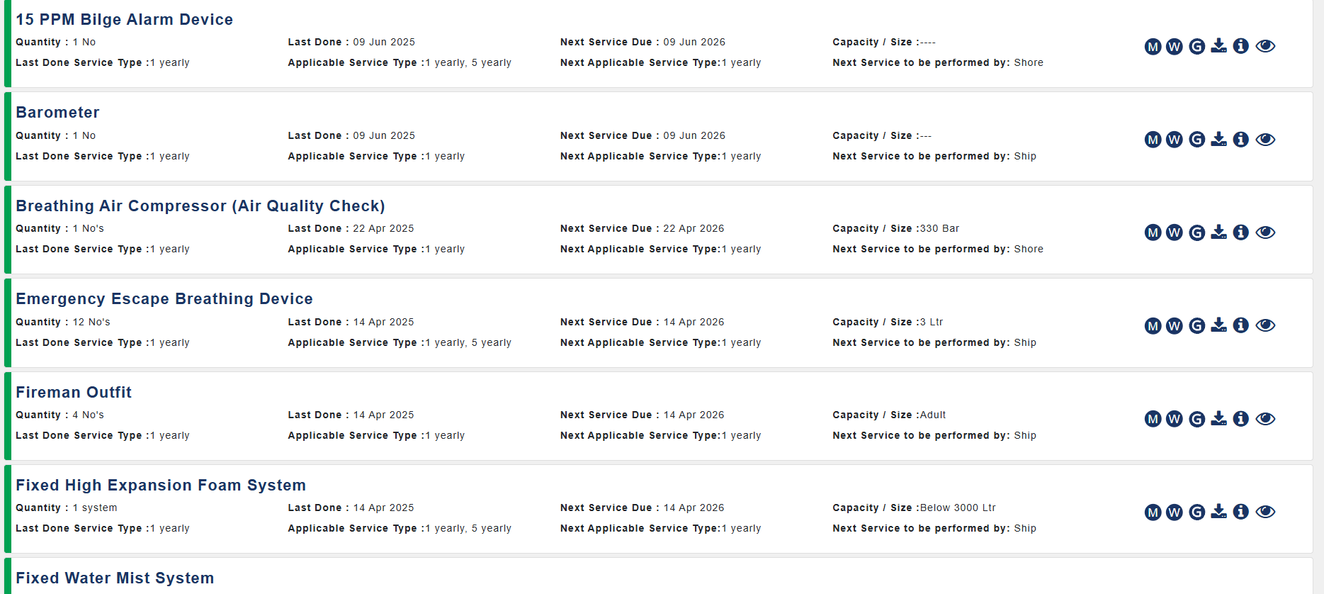 We provide end-to-end marine safety management, covering inspection, maintenance, certification, and compliance tracking. With a cloud-based service platform, automated reminders, and a global support network, our services ensure vessels remain fully compliant and operational - without last-minute surprises.